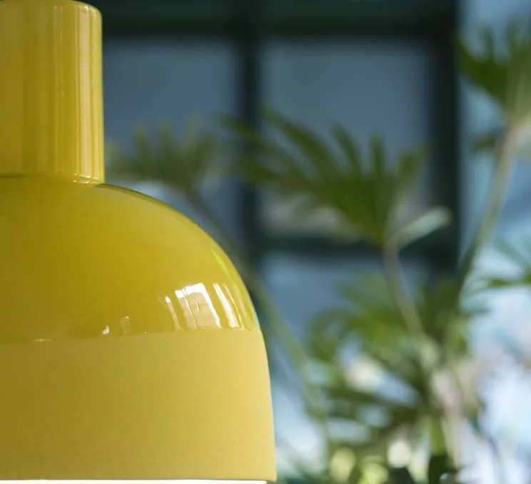 Flamboyante, voici la suspension Caxixi jaune imaginée par Giorgio Biscaro pour Ferroluce.