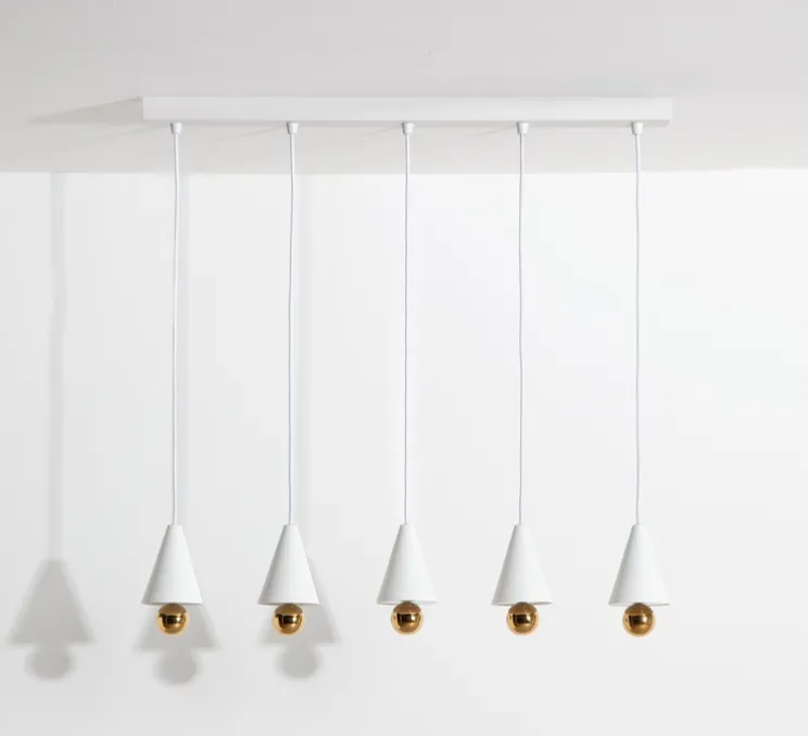 Découvrez l’iconique Cherry avec 5 suspensions de petites tailles en finition blanc de la maison Petite Friture, réalisée par le studio de design australien Daniel et Emma.