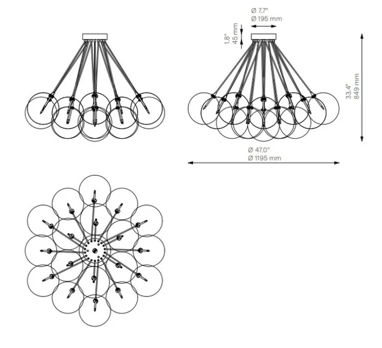 La suspension mesure 119,5cm de diamètre pour une hauteur de 84,9cm.
