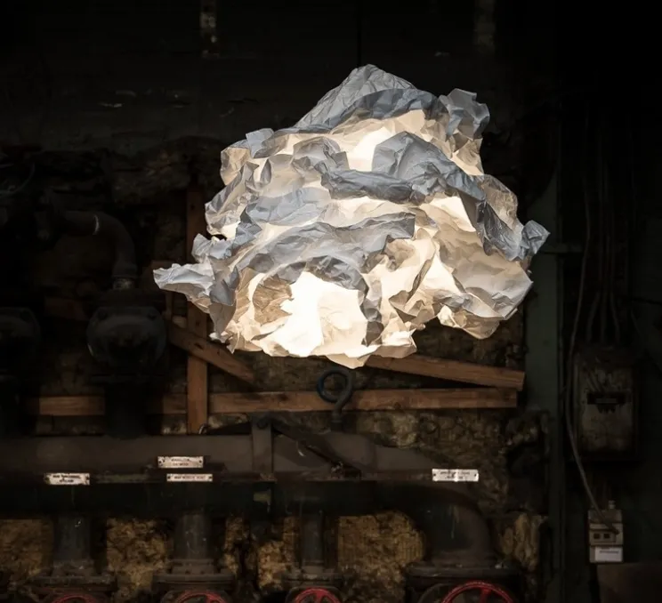 Cette suspension peut être froissée à l’infini et garder sa nouvelle forme grâce au matériau à mémoire de forme qui la compose.