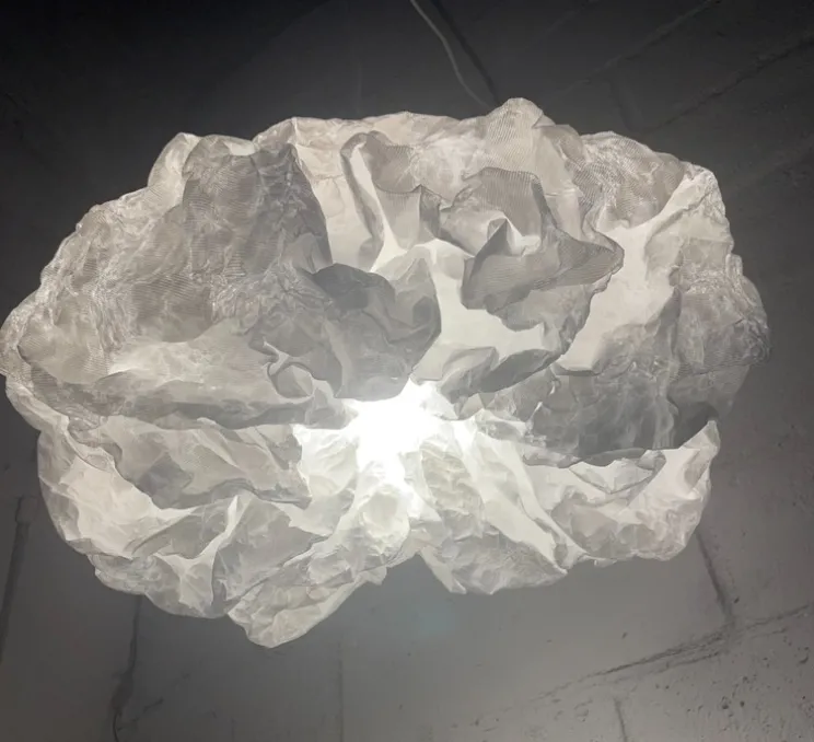 Inspirée par la douceur des nuages et leurs formes organiques, ce luminaire apporte une touche de légèreté à votre intérieur. Confectionnée à partir de Tyvek, un matériau qui allie l’aspect délicat du papier à une incroyable résistance aux déchirures et aux UV, Cloudy diffuse une lumière douce et chaleureuse. Avec son design vaporeux et ses plis délicatement façonnés, ce luminaire poétique « vous garde la tête dans les nuages » comme l’explique sa créatrice.