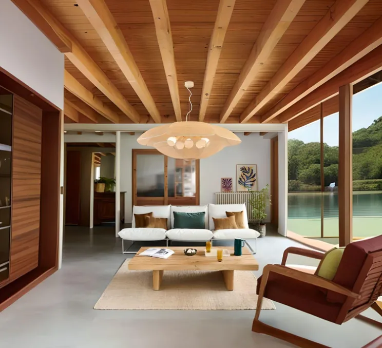 Conçue en 2024, cette pièce d’intérieur se distingue par son élégance naturelle et ses matériaux authentiques, tels que le rotin.