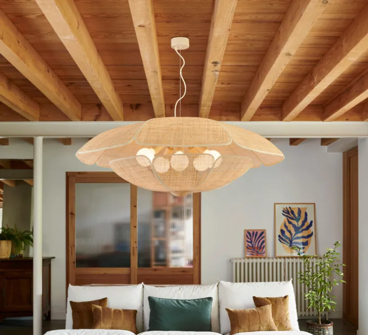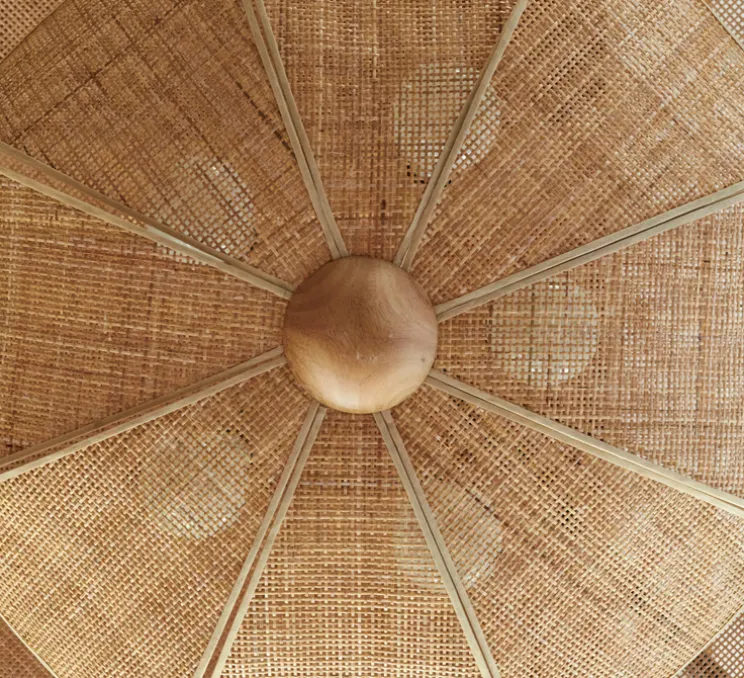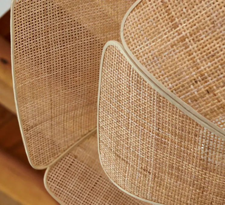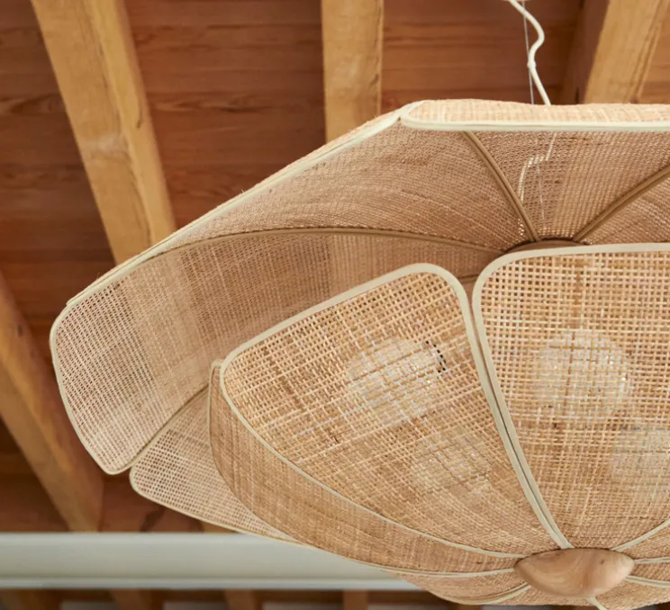 Avec ses formes organiques et son design inspiré des coquillages, cette suspension diffuse une lumière douce et chaleureuse. Idéale pour les grands espaces, elle est parfaite pour créer une ambiance à la fois accueillante et naturelle. Ses pétales en cannage apportent une touche vintage et enveloppent les sources lumineuses comme des perles précieuses, reflétant et diffusant une lumière harmonieuse.
