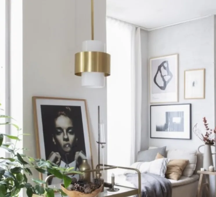 La suspension Corinth est un véritable objet de décoration. Le diffuseur cylindrique en verre opalin brillant est contrasté par une bande métallique de couleur laiton. Le design minimaliste et le jeu des matières font de la suspension Corinth un luminaire élégant et épuré qui attire l’œil.
