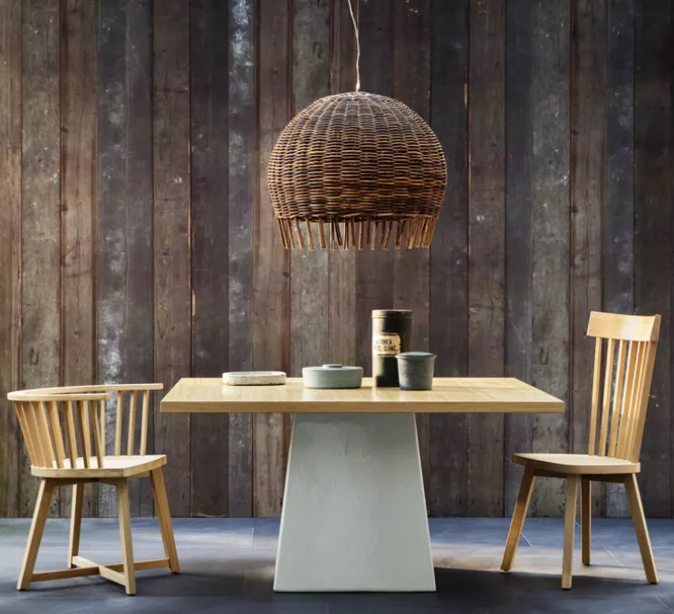 Cette suspension au style naturel est un intemporel du design. Son côté brut est le reflet de sa personnalité… L’abat-jour forme un trois quart de sphère; il est fabriqué entièrement en rotin crocodile tressé ce qui lui donne une allure sauvage avec une couleur boisée qui attire l’oeil. La qualité et la finesse du rotin lui permettent de se marier en toute harmonie avec plusieurs styles de décoration d’intérieur.