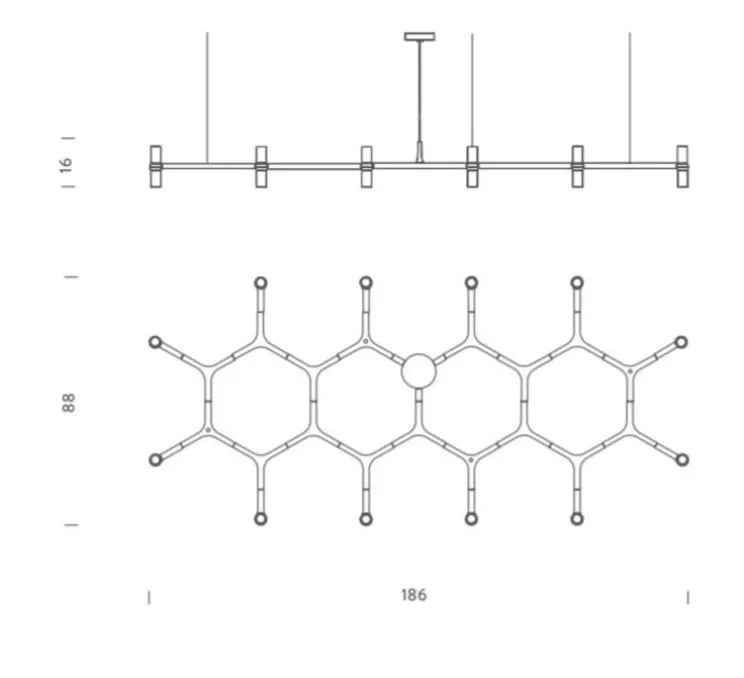 Crown plana major est une suspension tout en longueur mesurant 186cm long sur 88cm de large.