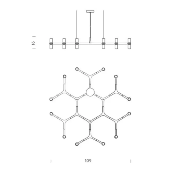 La structure de Crown est réalisée en aluminium moulé. Les 12 ampoules nécessaires ne sont pas fournies. Nous vous conseillons l’utilisation de LED G9, 25W. Dimmable selon les ampoules utilisées. Le câble mesure 2,5m.