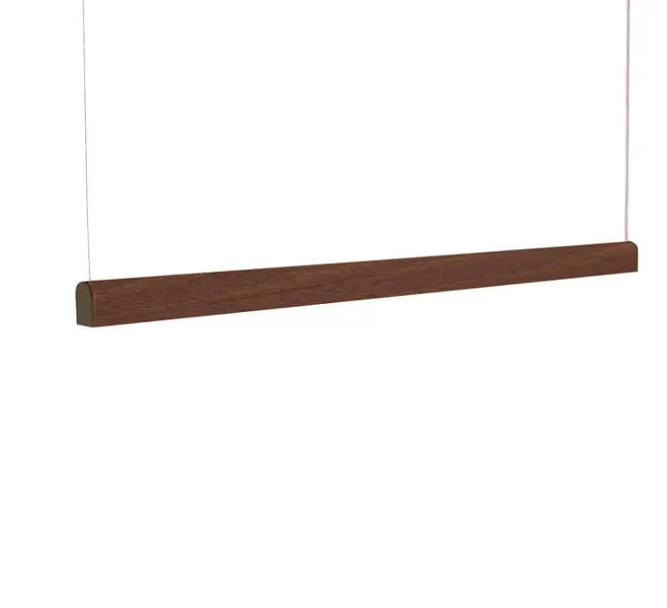 En finition noyer, la Curve présente une silhouette longiligne et naturelle. Son profil fin s’intègre dans une salle à manger, un bureau ou un espace de réception où elle structure l’espace avec discrétion. Elle se combine parfaitement à des ambiances sobres et épurées, ou à des intérieurs mêlant bois et matières minérales. Sa lumière orientée vers le bas convient à un éclairage de table ou de plan de travail.