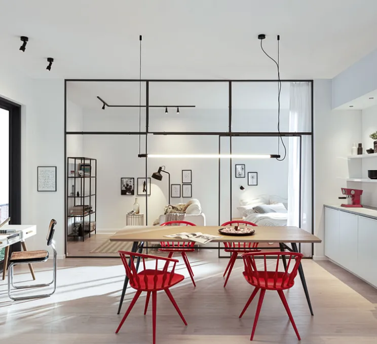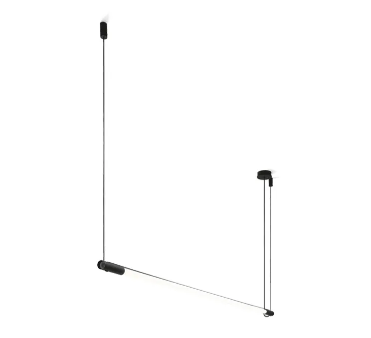 Le luminaire Darf se présente sous la forme d’un long tube lumineuse avec détails noirs à ses extrémités, de deux filins avec support de fixation plafond et d’un câble avec rosace. Graphique et minimaliste, la suspension Darf s’installe individuellement ou à plusieurs, dans des lieux publics ou privés, que ce soit dans un showroom, des bureaux ou une pièce de vie.