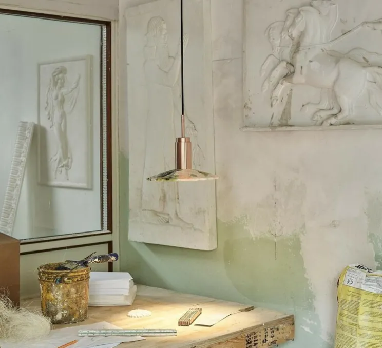 La suspension se compose d’une base cylindrique minimaliste disponible dans plusieurs matériaux, cuivre, laiton et acier inoxydable dans différentes finitions, polies, brossées, brunies ou oxydées.