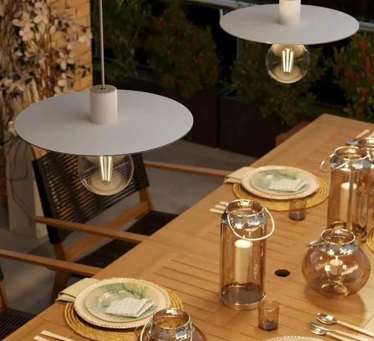 Avec son câble textile de 5 mètres, cette suspension offre une grande liberté d’installation. Elle s’intègre harmonieusement à divers styles d’aménagement. Parfaite pour sublimer un espace extérieur, elle trouvera idéalement sa place au-dessus d’une table sur une terrasse.