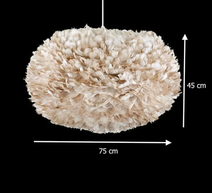 Cette superbe création signée Soren Ravn Christensen pour la maison de design danoise, Vita Copenhagen – Umage, est composée d’un très bel abat-jour en papier, habillé avec environ 6000 plumes d’oie, d’une hauteur de 45cm et avec un diamètre de 75cm.