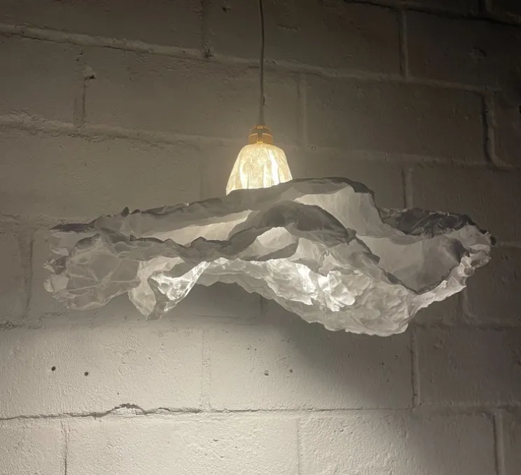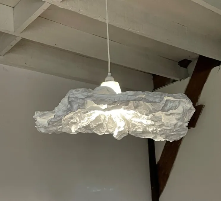 Compte tenu de la souplesse du matériau utilisé, la hauteur et la forme du luminaire peuvent différer d’un modèle à l’autre. La fabrication manuelle rend chaque pièce unique.