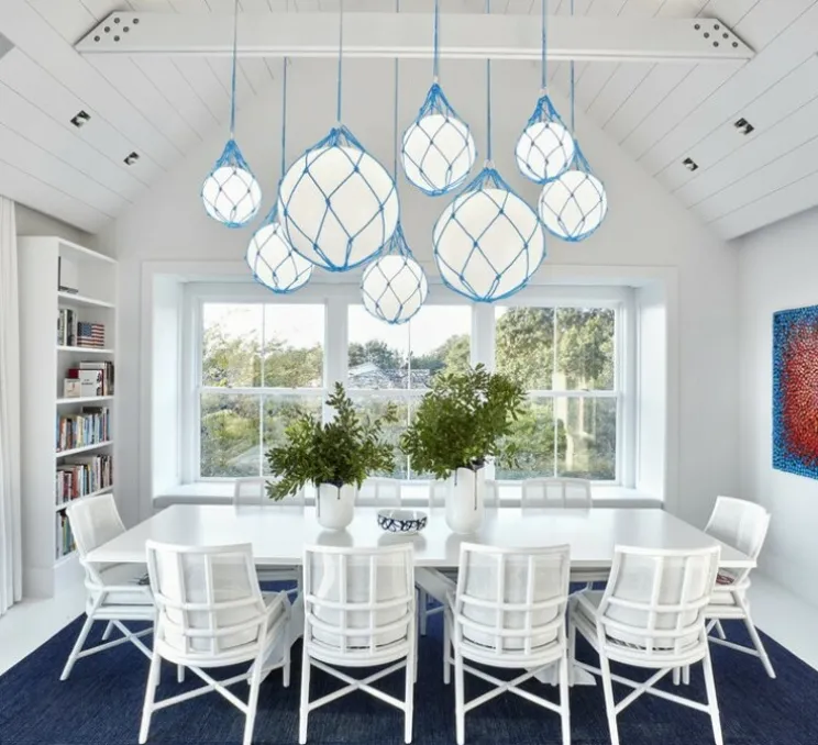 Cette pièce unique, introduite en 2011, se distingue par un design alliant esprit maritime et charme enfantin. Le diffuseur sphérique blanc est entouré d’un filet de pêche bleu, évoquant les bouées accrochées aux flancs des bateaux. Sa teinte bleutée apporte une ambiance reposante à votre intérieur. Ce luminaire s’intègre aussi bien dans une chambre d’enfant que dans un décor côtier ou maritime.