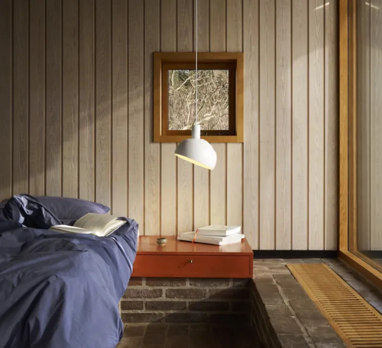 La suspension FJ Elements 250, conçue par Finn Juhl et rééditée par Louis Poulsen en 2025, reprend les croquis originaux de l’architecte danois.