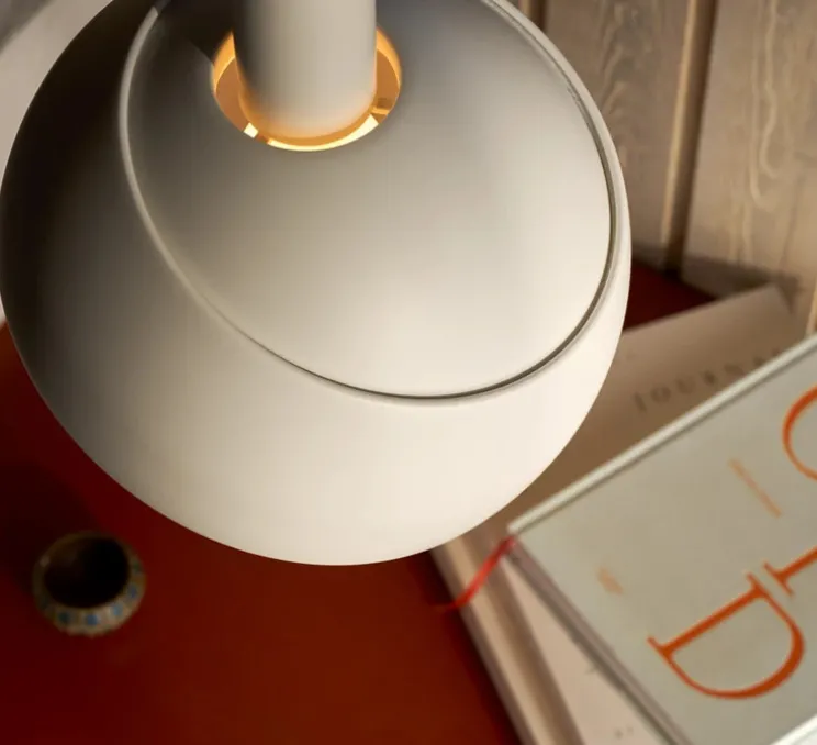 Avec son abat-jour hémisphérique en deux parties, la suspension en aluminium blanc joue sur les volumes et permet d’orienter la lumière selon l’ambiance souhaitée. Son design minimaliste et sphérique s’intègre aisément au-dessus d’une table, dans un salon ou un espace de travail, où elle apporte une touche décorative et architecturale.