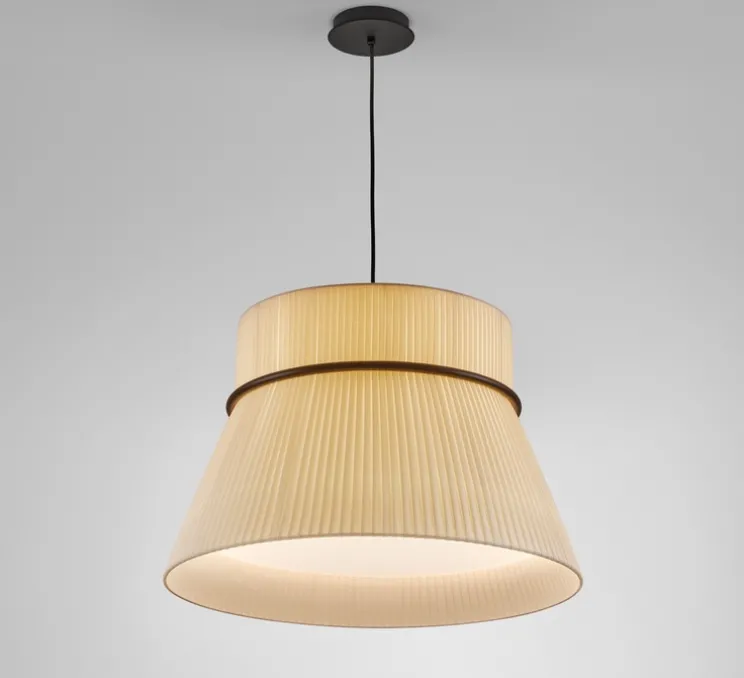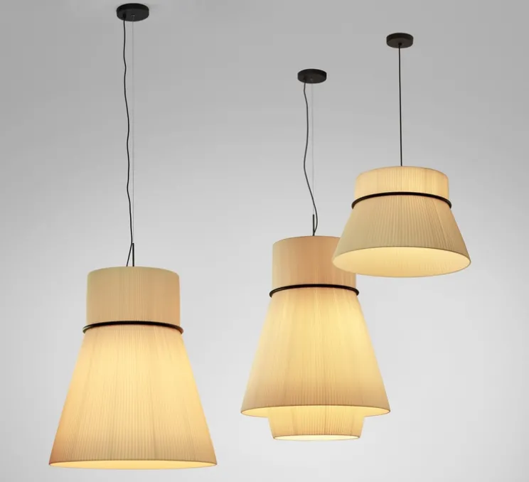 Chaque lampe est composée d’un ou de plusieurs abat-jours selon le modèle. Ils émettent une lumière filtrée à travers son ombre de ruban.