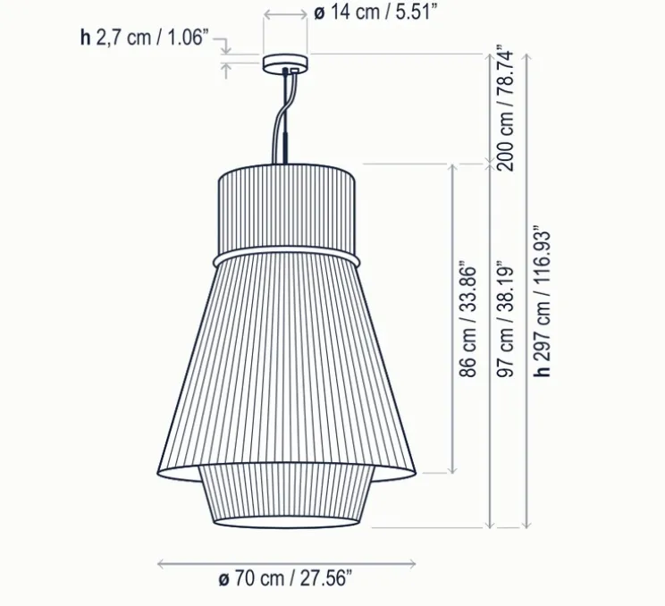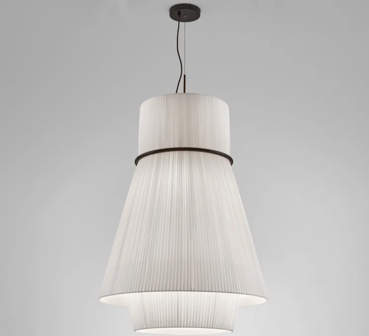 Chaque lampe est composée d’un ou de plusieurs abat-jours selon le modèle. Ils émettent une lumière filtrée à travers son ombre de ruban.