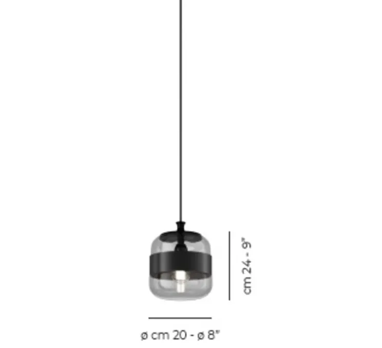 Ce luminaire mesure 20 cm de diamètre et 24 cm de hauteur. Nous vous recommandons une ampoule LED E27 de 9W Max.