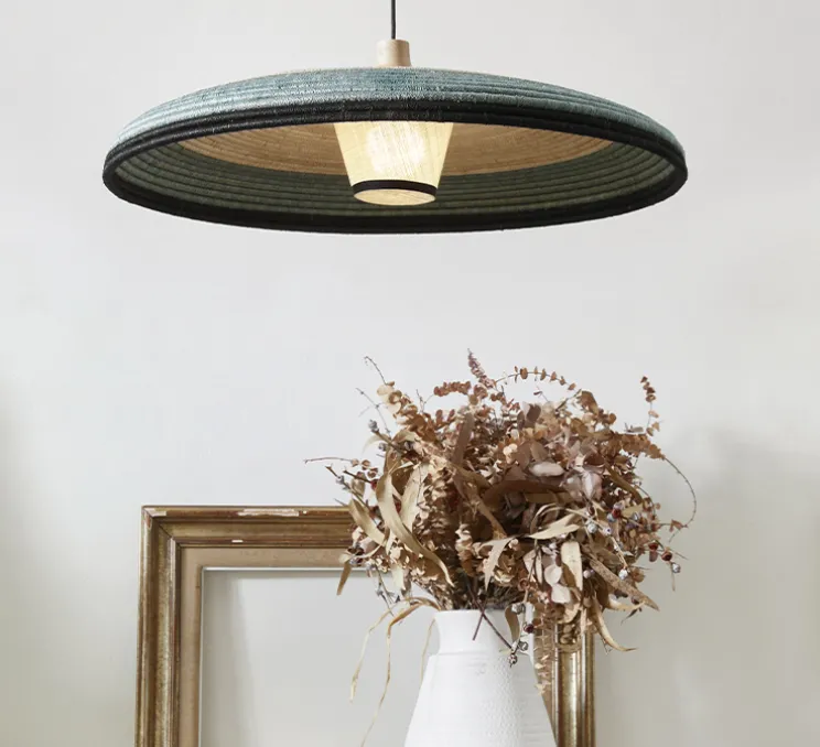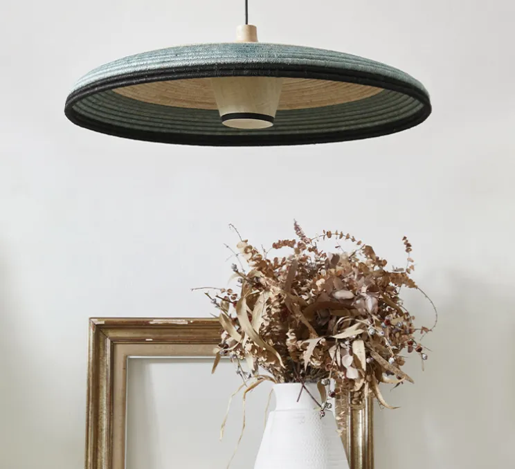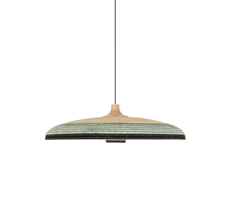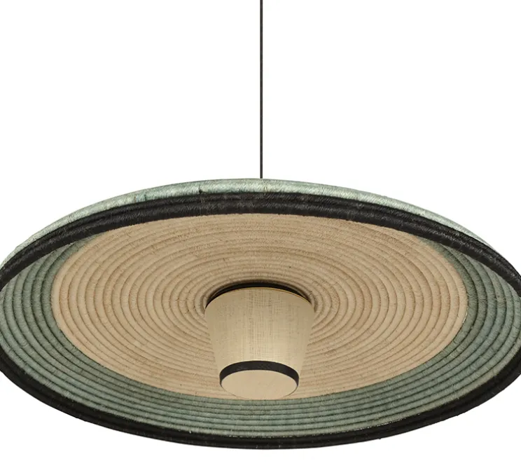 Le luminaire Grass est composé d’un abat-jour tissé de fil d’abaca, d’un diffuseur en raphia dissimulant la source lumineuse, d’un élément en bois reliant au câble et d’une rosace. Prenant ses inspirations dans l’art ancestral qu’est la vannerie et dans des camaïeux issus de paysage, la suspension Grass se place dans chaque intérieur, que ce soit individuellement ou à plusieurs, dans une chambre, un salon ou un bureau.