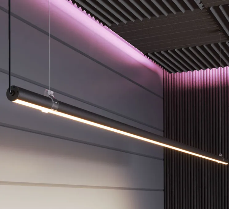 Avec sa forme cylindrique élancée et sa finition en noir et verre opal, Grip s’intègre parfaitement dans des environnements modernes et graphiques. Suspendu au plafond, ce luminaire crée une ambiance lumineuse élégante et subtile. Il peut être installé au-dessus d’une table, dans un hall d’entrée ou dans un espace de travail pour apporter une touche décorative tout en assurant un éclairage fonctionnel.