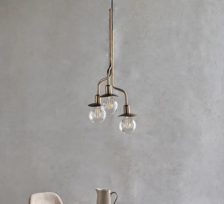 Cette suspension, dotée de trois abat-jour, apporte une touche industrielle et chaleureuse à vos intérieurs. Sa finition laiton lui donne un aspect chic et élégant.