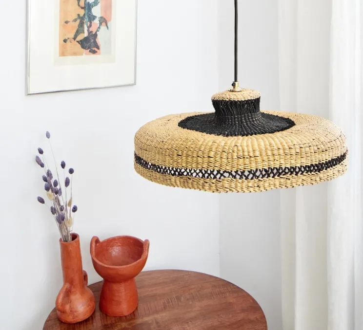 Abat-jour fabriqué au Ghana et assemblage réalisé en France.