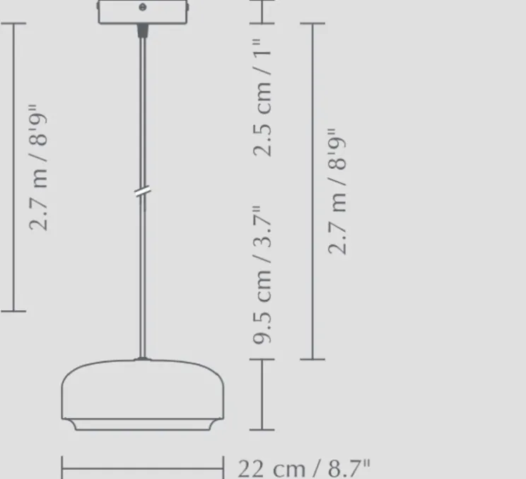La suspension est fournie avec un câble blanc de 2,7m ainsi que d’une rosace. La source lumineuse est incluse (1x module LED, 12W, 3000K, 600lm).