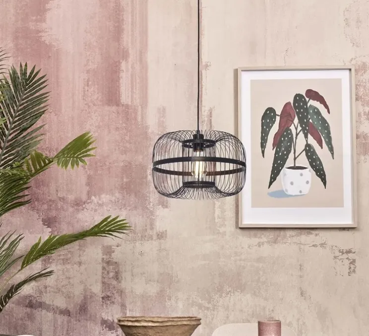 L’abat-jour mesure 38 cm de diamètre et 25 cm de hauteur. Le câble, en textile noir, mesure 2 mètres de long. Il est ajustable selon vos besoins.
