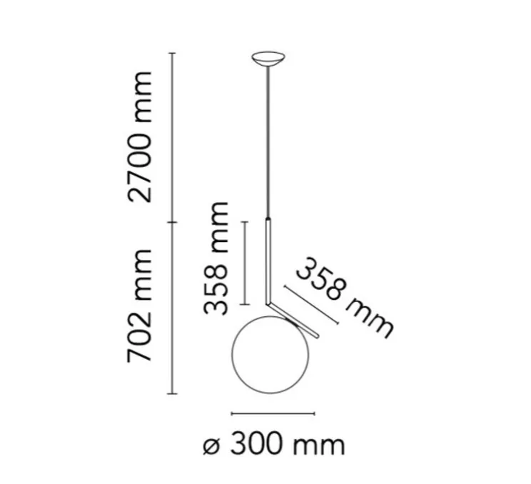 IC Lights se monte au plafond grâce à une rosace ronde et un câble de 2700 millimètres de longueur. L’ampoule n’est pas fournie (E27).