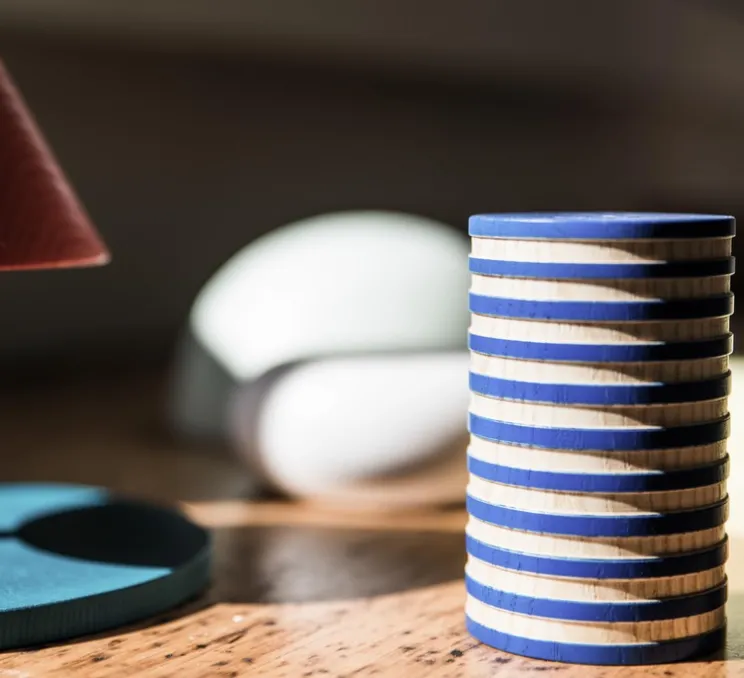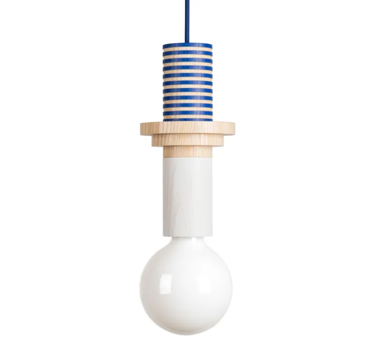 Dans la déclinaison « Column » de la collection JUNIT, les deux modules supérieurs sont interchangeables : le premier module est un cylindre rayé de bleu azur et le deuxième est couleur frêne.