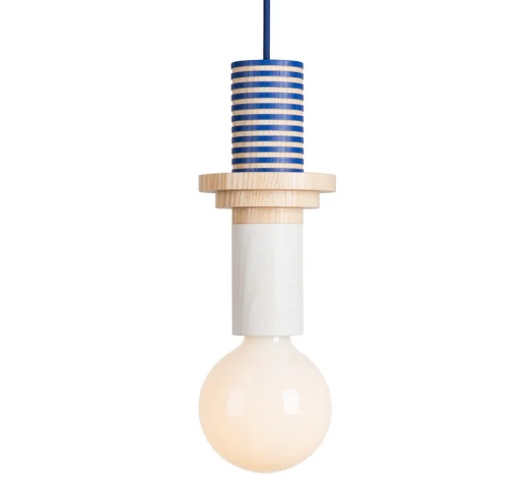 Le câble textile d’une longueur de 4 mètres, du même bleu que le module, souligne cette suspension très originale.