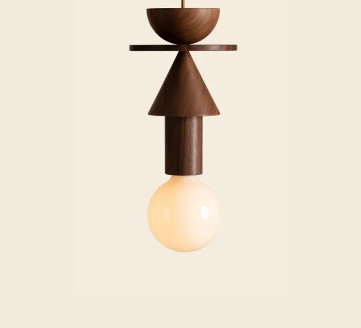 La lampe Junit, inspirée par le mouvement Bauhaus et habituellement proposée en une variété de couleurs, exprime ses formes abstraites avec toute l’élégance de la chaleur et du naturel du bois de noyer.