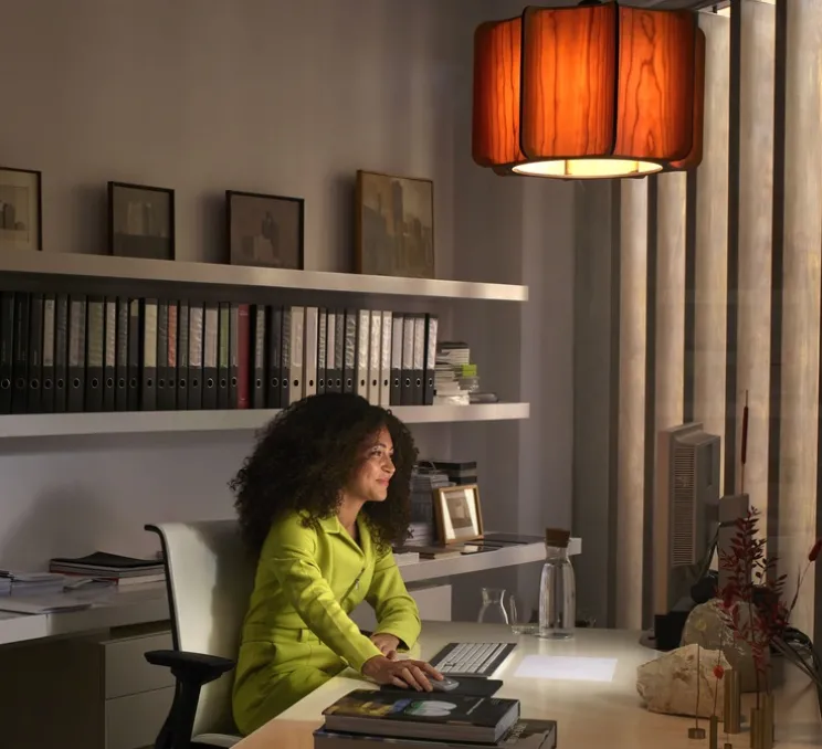 Elle se démarque par sa structure faite de panneaux de bois concaves qui révèle un jeu de lumière. Cette composition rappelle la forme d’un cactus qui apporte une touche organique à votre intérieur. Les matériaux utilisés créent une atmosphère chaleureuse, que la lumière soit éteinte ou allumée.