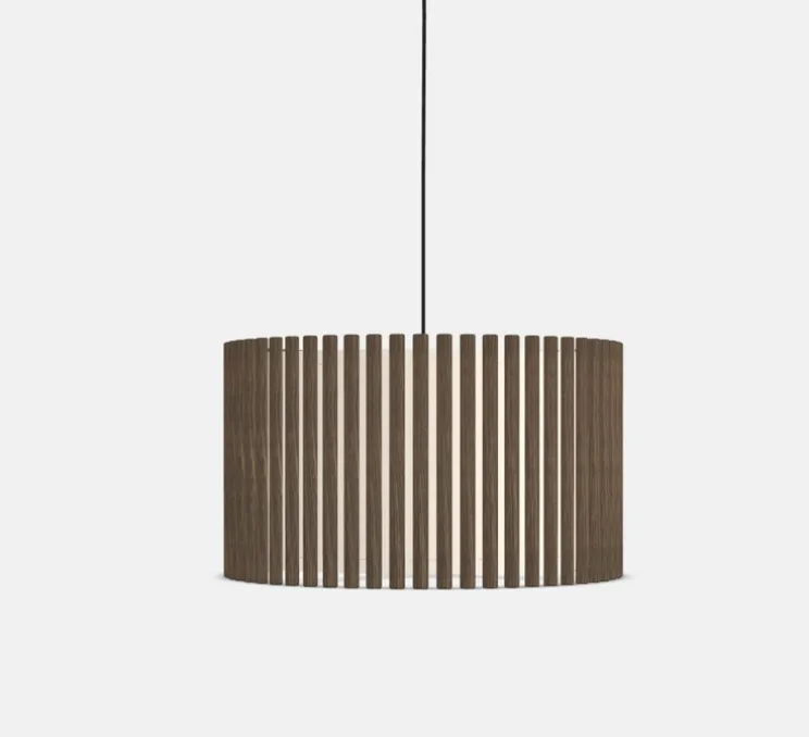 Composée de tissus et de lamelles de bois, avec une couleur chêne foncé, un diamètre de 44,7cm et une hauteur de 28,7cm, la Komorebi Circle Large est parfaite en intérieur.