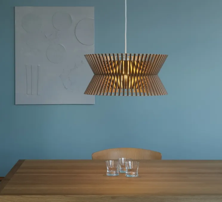 La suspension Kontro 6000 en bois de bouleau est superbe au-dessus de la table de salle à manger dans la cuisine ou la salle à manger et éclaire également parfaitement le couloir et le hall d’entrée.
