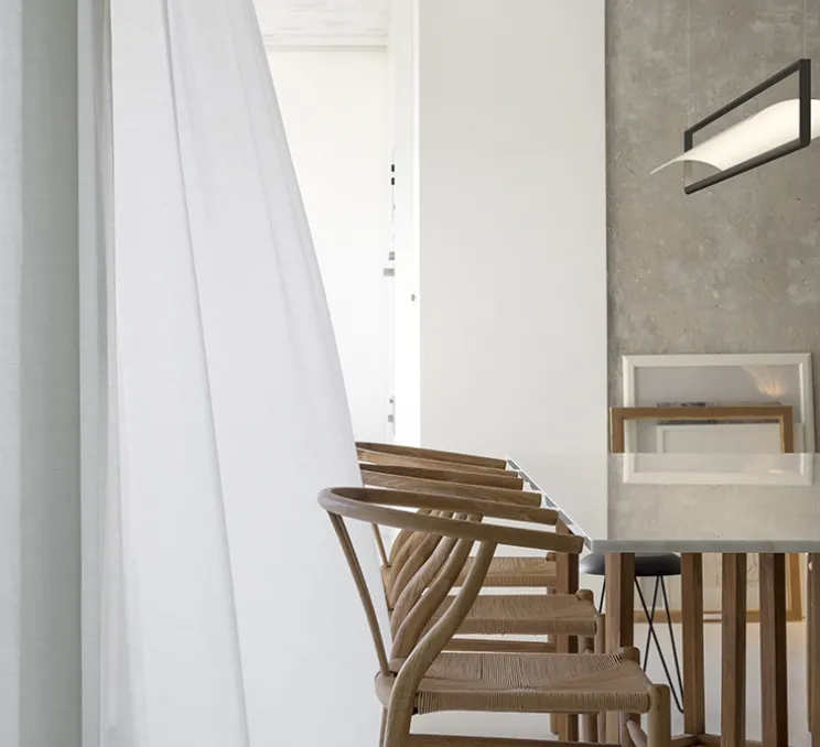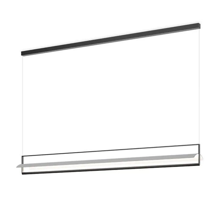 La suspension Kontour se présente sous la forme d’un cadre métallique rectangulaire ouvert équipé de LEDs, accueillant, en son centre, une plaque de métal incurvée faisant office de réflecteur. Suspendue à de fins câbles presque invisibles, elle apporte un éclairage diffus évoquant une pluie de lumière. Offrant littéralement un cadre à l’éclairage, la suspension Kontur met élégamment en scène la source de lumière, qui apparait ici sous la forme d’une ligne lumineuse. Mariant ainsi pureté des volumes et architecture géométrique graphique, la suspension Kontur s’intègre aisément dans les lieux privés ou publics, que ce soit au-dessous d’une table, dans une pièce de vie ou un espace de travail.