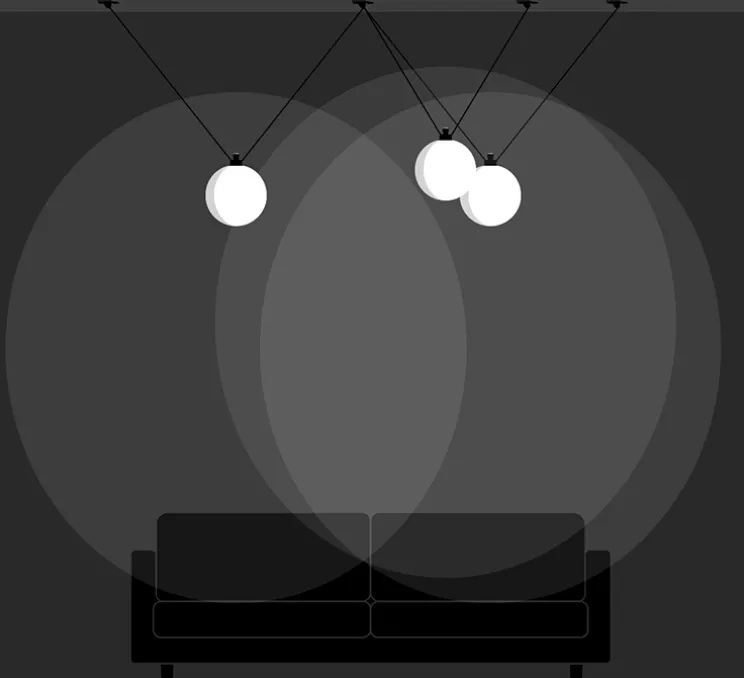 Des accessoires permettent de composer en ligne ou sur quatre axes de multiples compositions à partir d’une seule source d’électricité, ainsi que de déporter la suspension à un endroit précis, peu importe la position de l’alimentation électrique.