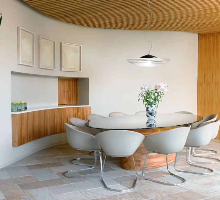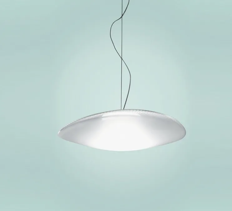 La suspension Loop apporte une touche de modernité et de graphisme à vos espaces. Avec son diffuseur en verre soufflé transparent, rayé sur la partie supérieure et sablé sur la partie inférieure, la suspension est un véritable objet décoratif.