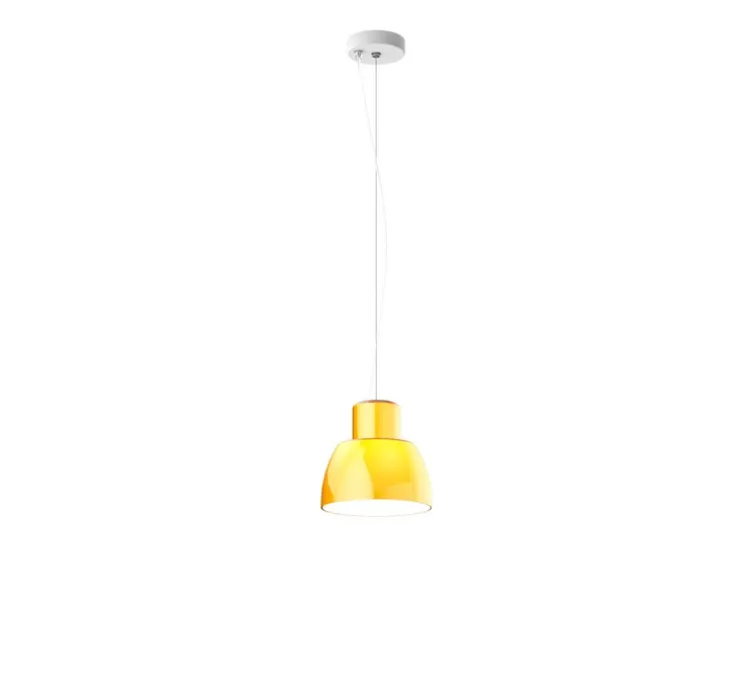 La suspension jaune Sorrento Lorosae de la collection du même nom est une création d’Álvaro Siza rééditée pour la marque italienne Nemo Lighting.