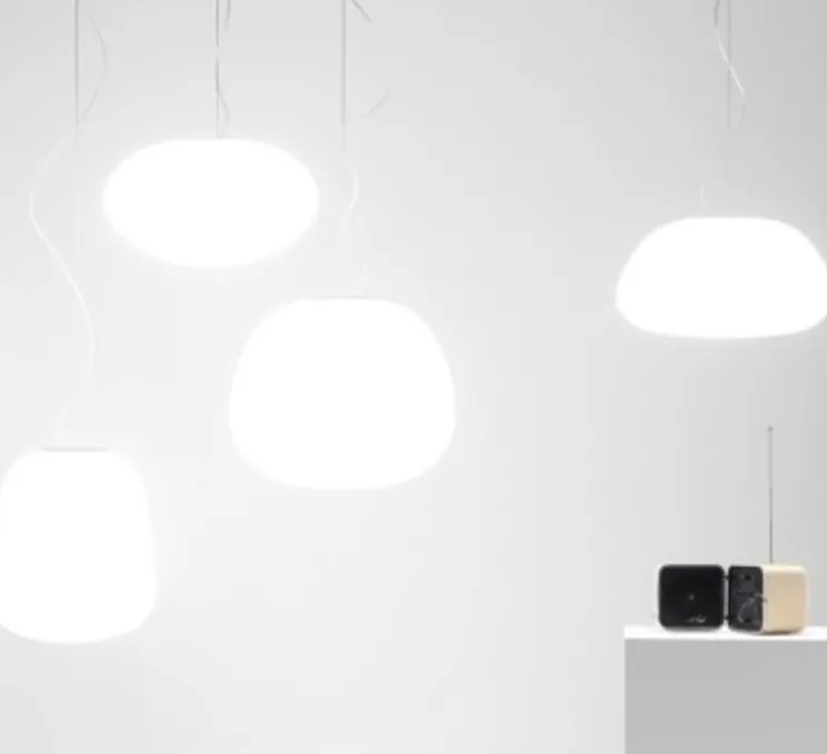 Découvrez la suspension lumi poga en verre soufflé blanc de la maison fabbian !