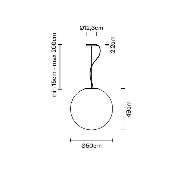La suspension mesure 50 cm de diamètre et 49 cm de hauteur. Elle existe dans d’autres formats.