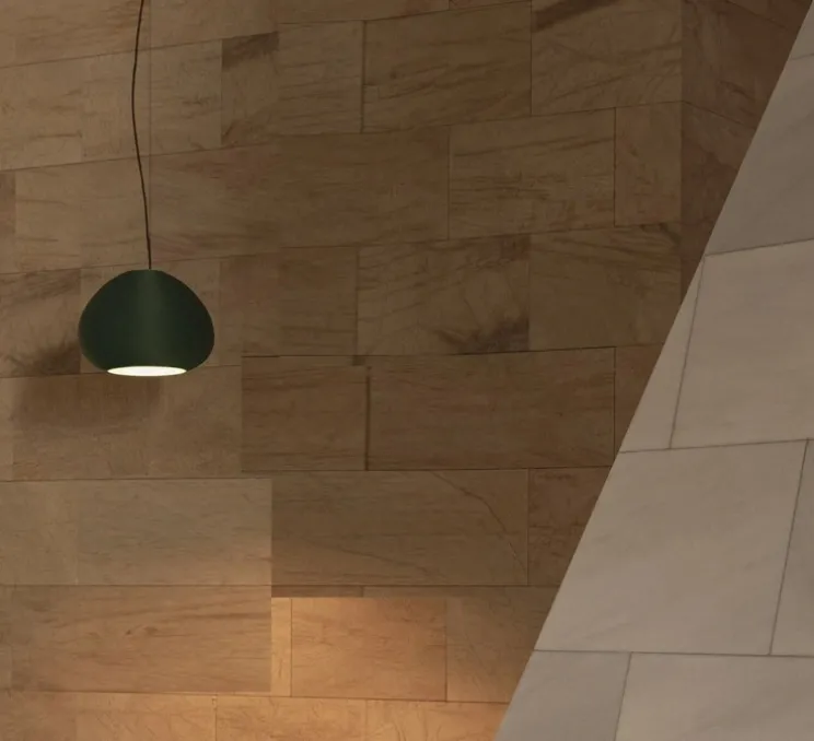 La collection de suspensions MAR puise son inspiration dans la forme des coquilles d’oursins. L’abat-jour est fabriqué à partir de filets de pêche recyclés, qui lui donnent sa nuance verte si singulière. Avec ces luminaires, l’impression 3D se met au service du développement durable.