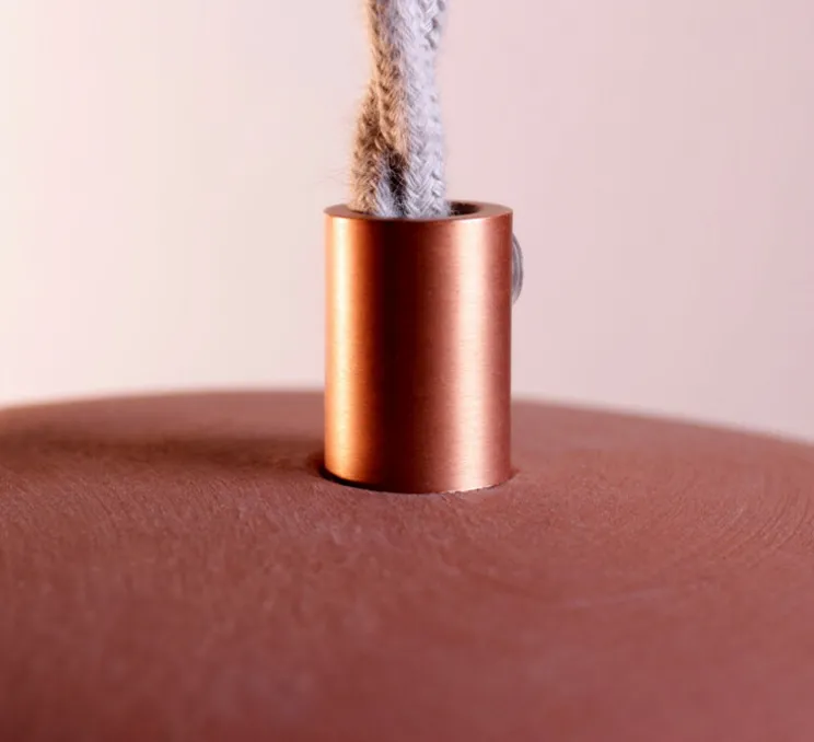 Découvrez la suspension en céramique Marcel, abat-jour terracotta et câble tressé jute imaginée par la maison française Nexel.