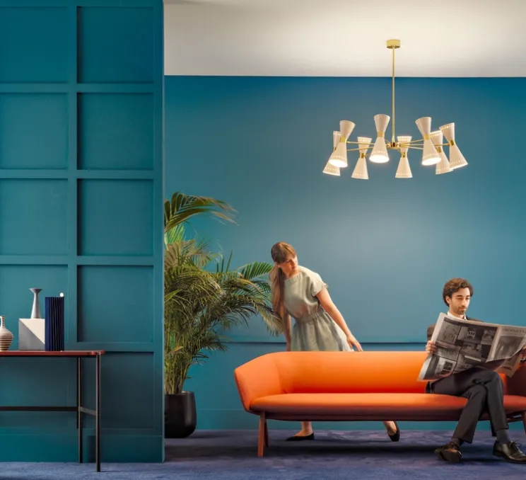 Emblématique des années 1950, la suspension Megafono est dotée d’une lumière à la fois directe et indirecte. L’abat-jour à double cône réglable, en finition ivoire ou noir brillant, est associé à la tige en laiton précieux dorure galvanique, pour éclairer avec une touche raffinée.