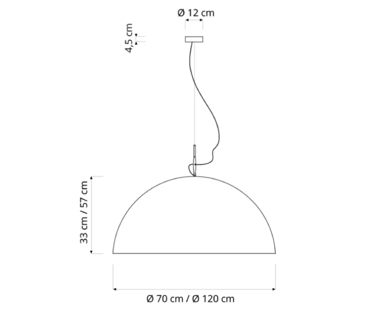 D’un diamètre de 70 cm, elle est fournie avec un câble de 1.30 mètres, l’ampoule E27 n’est cependant pas incluse.