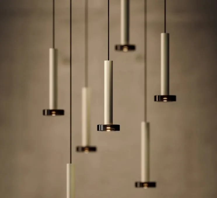 Voici la suspension Milana 8 blanc cassé du designer Jaume Ramírez pour la maison Marset.