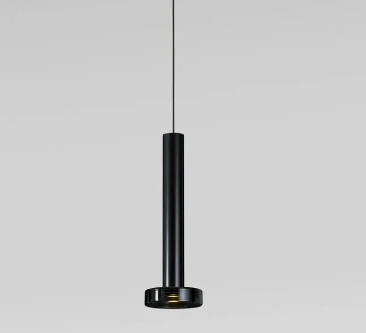 Cette suspension graphique en forme de cylindre est synthétisée à son maximum afin de créer un luminaire minimaliste et moderne. Une lentille imperceptible recouvre la LED et distribue la lumière. La lumière est dirigée vers le bas de manière directe.