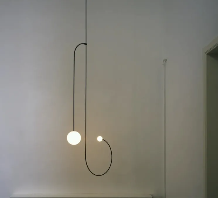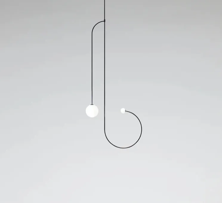 Signé par le chypriote designer du même nom, ce luminaire révèle un design minimaliste avec des formes très graphiques et épurées. Ces traits et ces dessins de lignes dans les airs possèdent plusieurs sources de lumière chaude, avec des diffuseurs en verre soufflé opalin.