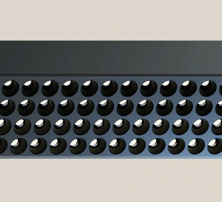 Sa finition noire et ses lignes minimalistes s’intègrent parfaitement dans des bureaux modernes ainsi qu’au-dessus de votre plan de travail de cuisine. Dimmable, elle s’utilise aussi avec l’application GRAU en mode Bluetooth pour contrôler l’intensité (jusqu’à 10700lm) et la couleur de la lumière (variant entre 2700K et 4000K), offrant ainsi une ambiance personnalisée en fonction des besoins. La suspension Team, de forme cubique, mesure 137 cm de longueur et 4 cm de hauteur. Avec un IRC supérieur à 94, cette suspension garantit une grande qualité de lumière.